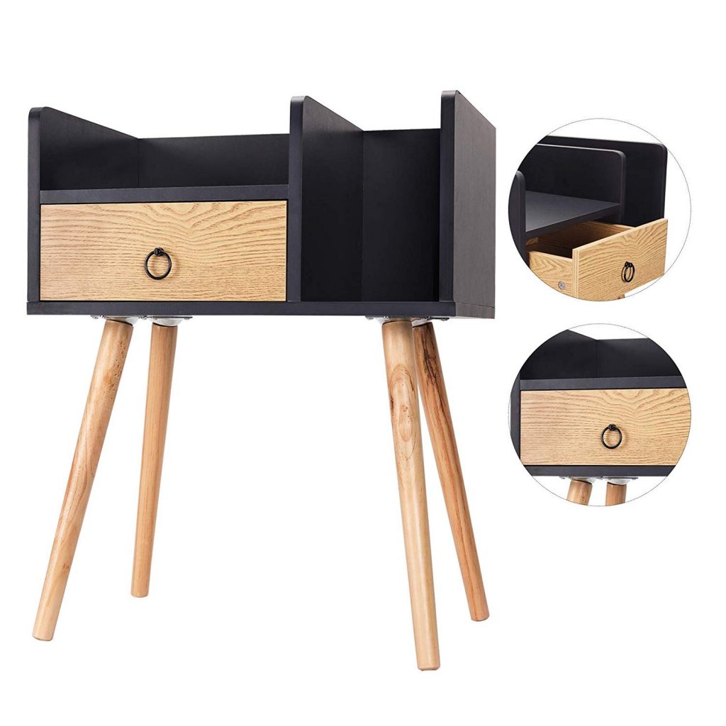 • Тумбочка з висувною скринькою та відкритим відсіком, де можна зберігати книги, журнали