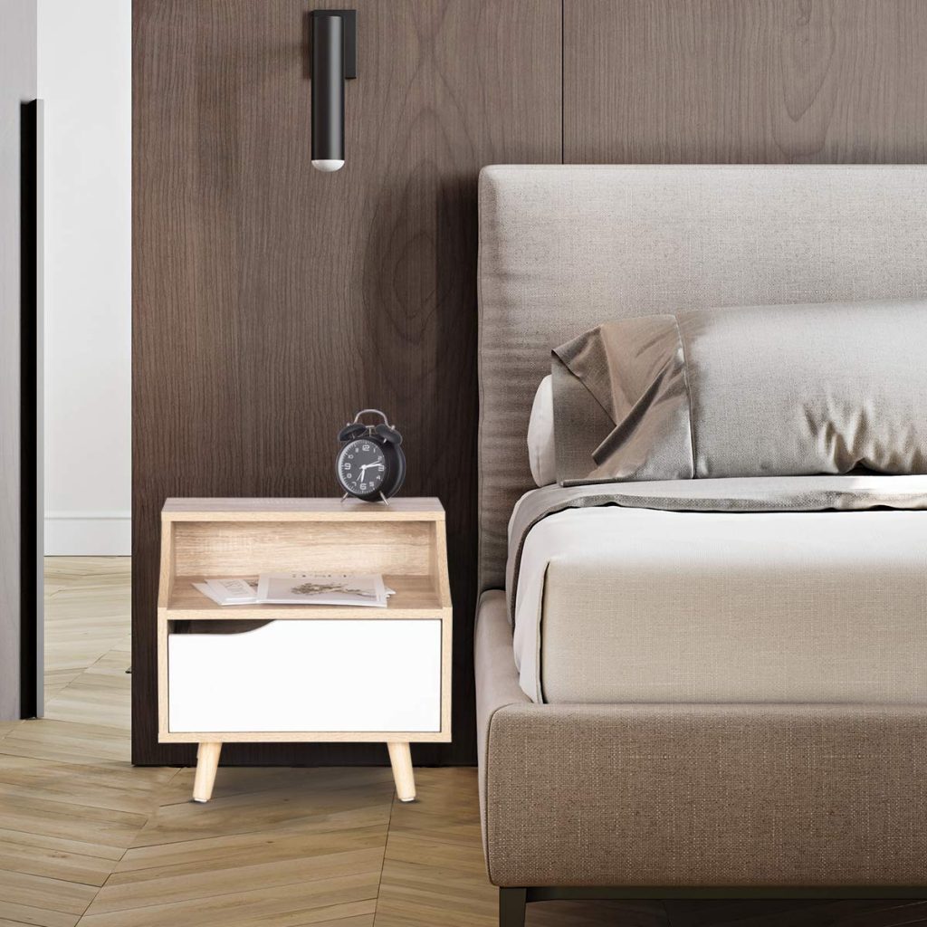 • Тумбочка з висувними ящиками та відкритим відділенням. У ньому можна зберігати книги, журнали чи інші дрібниці.