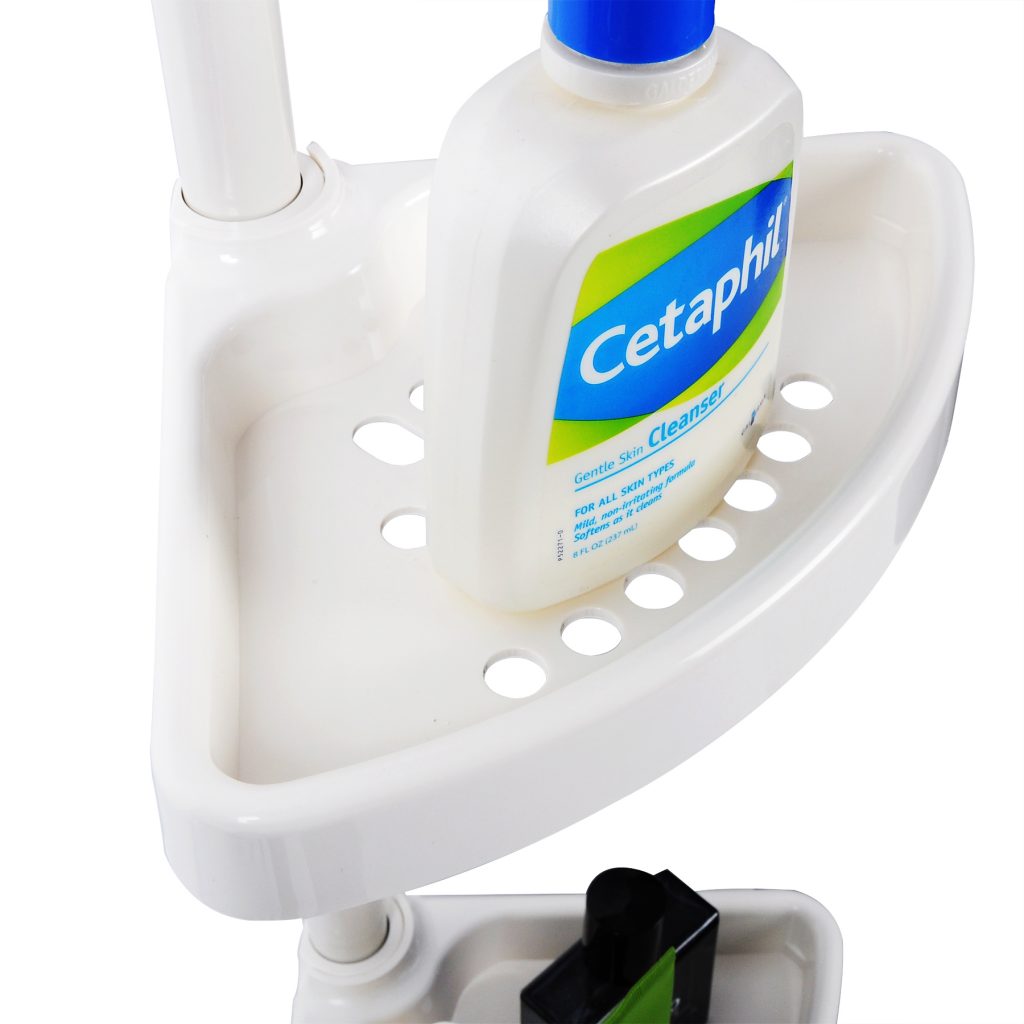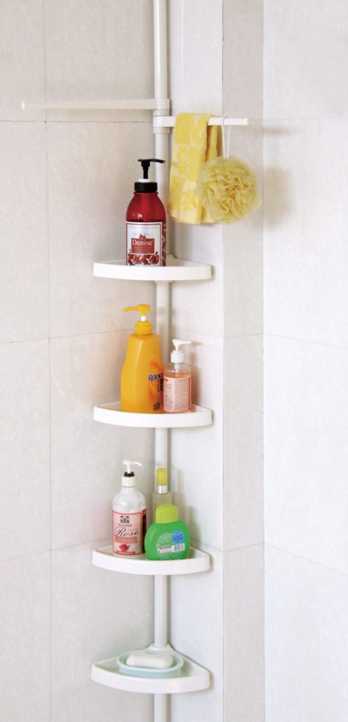 Високоякісний телескопічний душовий стелаж із нержавіючої сталі універсально застосовується у душових кабінах, ваннах та кутах. Практична кутова полиця має місце для зберігання шампуню, мила, губки та іншого лазневого приладдя.