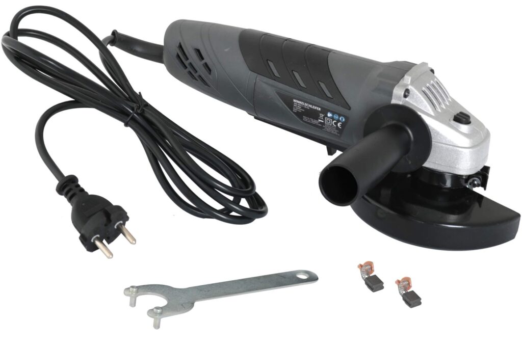 – кутова шліфувальна машина із захисним кожухом та ручкою: Д 27,5 x Ш 21,5 x В 9,5 см